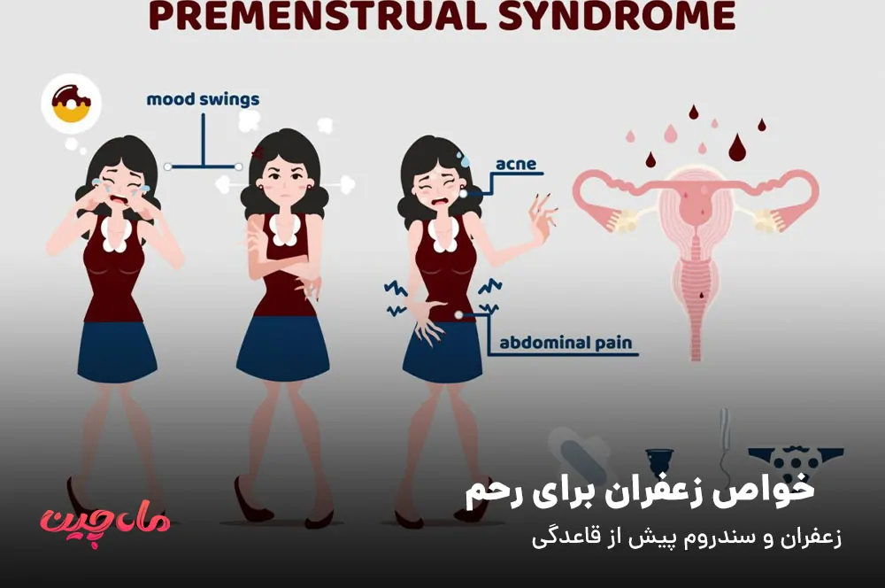 یکی از خواص زعفران برای رحم که میتواند تاثیر بسیار زیادی در بهبود عملکردهای فردی و طبیعی زنان داشته باشد کمک به بهبود سندروم پیش از قاعدگی است. سندروم پش از قاعدگی دارای علامت های آزاردهندهای همچون افسردگی، اختلالات گوارشی، اضطراب و دردهای عضلانی میباشد. بیشتر افرادی که دچار این سندروم میشوند بدون علامت بالینی خاصی هستند و سیر بیماری را به صورت خفیف میگذرانند و چیزی در حدود 25 درصد افراد نیاز به درمان پیدا میکنند.